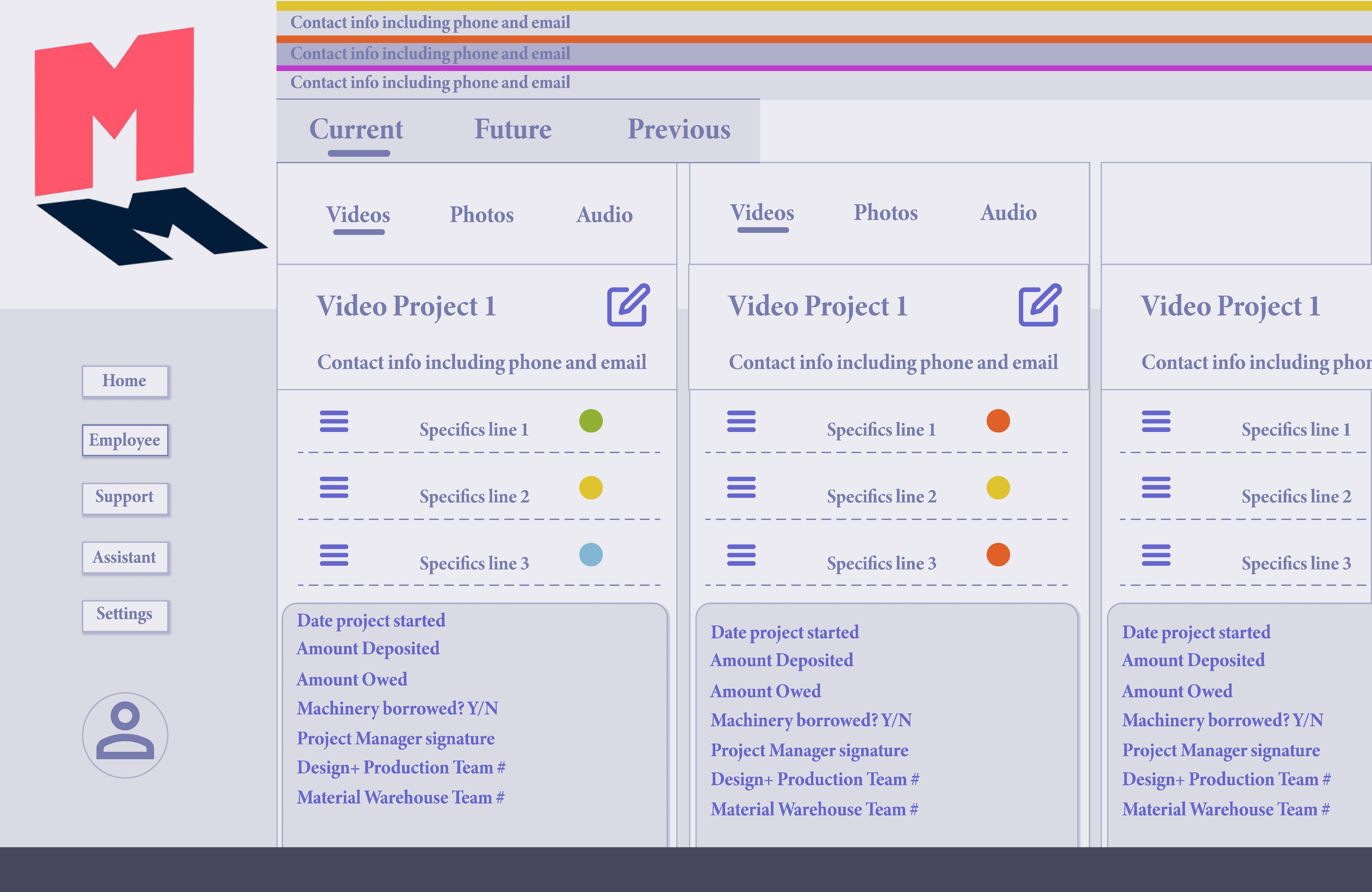 The first is the employee audience that is targeted with a more communicative web app, allowing for easier tracking of trappings of each project at each location and for easier communication between departments. The second is the existing group of small business, private film artists, ad and marketing agencies looking for access to recording equipment, project management, and digitization services. The third group is a new group of clients is focused more on equipment access, editing, and high resolution recordings (both audio and video/photo).